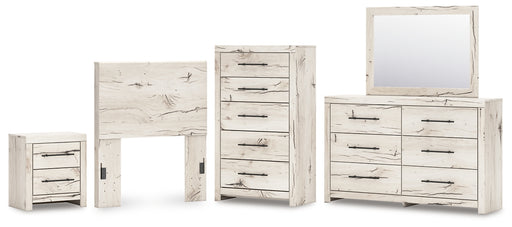 Lawroy Full Panel Headboard with Mirrored Dresser, Chest and Nightstand