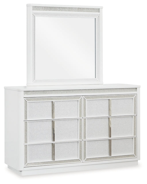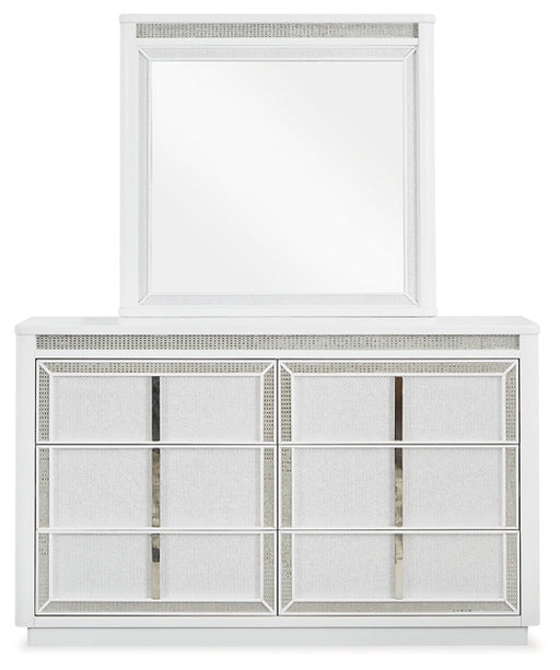 Stelsie Queen Panel Bed with Mirrored Dresser