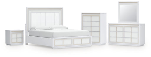 Chalanna California King Upholstered Storage Bed with Mirrored Dresser, Chest and Nightstand