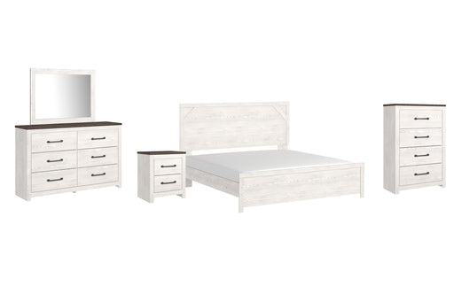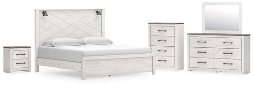 Gerridan King Panel Bed with Mirrored Dresser, Chest and Nightstand