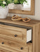 Details PCB1075B8: Includes panel headboard and footboard with rails, Made with engineered wood (MDF/particleboard/plywood) and decorative laminate for the right balance of affordability and durability , Warm replicated oak grain finish , Decorative laminate replicates natural or man-made material surfaces with consistent color, pattern and texture, Foundation/box spring required, sold separately , Mattress available, sold separately, Minor assembly required, PCB1075B1: Includes dresser and mirror, Made with engineered wood (MDF/particleboard/plywood) and decorative laminate for the right balance of affordability and durability, Warm replicated oak grain finish, Decorative laminate replicates natural or man-made material surfaces with consistent color, pattern and texture, Dark nickel-tone knobs, 6 smooth-gliding drawers, Drawer interiors are lined with a faux linen laminate for a clean, finished look, Mirror attaches to back of dresser; can also be mounted on wall horizontally or vertically, Safety is a top priority, clothing storage units are designed to meet the most current standards for stability, ATM F 2057 (ASTM International) , Drawers extend out to accommodate maximum access to drawer interior while maintaining safety, Minor assembly required,