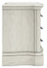 Details B980B2: Includes headboard, footboard and rails, Made with hardwood solids, spruce veneer, MDF substrates and cast resin components , Antiqued white painted finish, Polyester upholstery, Button tufting, Foundation/box spring required, sold separately, Mattress available, sold separately, Assembly required, B980B1: Includes dresser and mirror, Made with hardwood solids, spruce veneer, MDF substrates and cast resin components, Antiqued white painted finish, 9 drawers with fully finished interiors, French and English dovetail construction and ball-bearing side glides, Metal bar pulls with aged pewter-tone finish, Mirror attaches to back of dresser, B980-93: Made with hardwood solids, spruce veneer, MDF substrates and cast resin components, Antiqued white painted finish, 3 drawers with fully finished interiors, French and English dovetail construction and ball-bearing side glides, Metal bar pulls with aged pewter-tone finish, 110V power supply with dual USB charging ports, Power cord included; UL Listed,