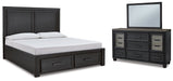 Foyland King Panel Storage Bed with Mirrored Dresser