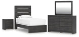 Hollivern Twin Panel Bed with Mirrored Dresser and Nightstand