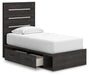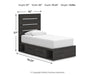 Details PCB2108B17: Includes panel headboard/footboard, rails with side storage and roll slats, Made with engineered wood (MDF/particleboard/plywood) and decorative laminate for the right balance of affordability and durability , Charcoal finish over replicated oak grain with authentic touch, Decorative laminate replicates natural or man-made material surfaces with consistent color, pattern and texture, 2 smooth-gliding drawers, 2 storage cubbies, Bed does not require additional foundation/box spring; accommodates most zero clearance adjustable bases with the addition of a bunkie board, Mattress available, sold separately, Minor assembly required, PCB2108B1: Includes dresser and mirror, Made with engineered wood (MDF/particleboard/plywood) and decorative laminate for the right balance of affordability and durability , Charcoal finish over replicated oak grain with authentic touch, Decorative laminate replicates natural or man-made material surfaces with consistent color, pattern and texture, Large-scale dark colored handles, 6 smooth-gliding drawers, Drawer interiors are lined with a faux linen laminate for a clean, finished look , Mirror attaches to back of dresser; can also be mounted on wall horizontally or vertically, Safety is a top priority, clothing storage units are designed to meet the most current standard for stability, ASTM F 2057 (ASTM International), Drawers extend out to accommodate maximum access to drawer interior while maintaining safety, Minor assembly required,