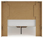 Details B2310B20: Includes panel headboard, storage footboard, platform rails and roll slats , Made with engineered wood (MDF/particleboard/plywood) and decorative laminate for the right balance of affordability and durability, Rustic white finish over replicated reclaimed oak grain with authentic touch, Decorative laminate replicates natural or man-made material surfaces with consistent color, pattern and texture, 2 smooth-gliding storage drawers, Drawer interiors are lined with a faux linen laminate for a clean, finished look, Bed does not require additional foundation/box spring; accommodates most zero clearance adjustable bases with the addition of a bunkie board , Mattress available, sold separately, Minor assembly required, B2310B1: Made with engineered wood (MDF/particleboard/plywood) and decorative laminate for the right balance of affordability and durability, Rustic white finish over replicated reclaimed oak grain with authentic touch, Decorative laminate replicates natural or man-made material surfaces with consistent color, pattern and texture, Handles with dark pewter-tone finish, 6 smooth-gliding drawers, Drawer interiors are lined with a faux linen laminate for a clean, finished look, Framed front and pilasters, Safety is a top priority, clothing storage units are designed to meet the most current standard for stability, ASTM F 2057 (ASTM International), Drawers extend out to accommodate maximum access to drawer interior while maintaining safety, Mirror attaches to back of dresser; can also be mounted on wall horizontally or vertically , Minor assembly required, B2310-92: Made with engineered wood (MDF/particleboard/plywood) and decorative laminate for the right balance of affordability and durability, Rustic white finish over replicated reclaimed oak grain with authentic touch, Decorative laminate replicates natural or man-made material surfaces with consistent color, pattern and texture, Handles with dark pewter-tone finish, 2 smooth-gliding drawers, Drawer interiors are lined with a faux linen laminate for a clean, finished look, Framed front and pilasters, 2 slim-profile USB charging ports, Power cord included; UL Listed, Minor assembly required,