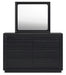 | Details | B768B4: Includes headboard, footboard and rails, Made with pine solids, veneers and engineered wood substrate, Textured black wood stain with waxy topcoat, Extra wide rails for a bench-like wrap around, Foundation/box spring required, sold separately, Mattress available, sold separately, Assembly required, B768B1: Includes dresser and mirror, Made with pine solids, veneers and engineered wood substrate, Textured black wood stain with waxy topcoat, Hardware-less design, 6 drawers with fully finished interiors, dovetail construction and ball-bearing side glides (top drawers felt lined), Mirror attaches to back of dresser, B768-92: Made with pine solids, veneers and engineered wood substrate, Textured black wood stain with waxy topcoat, Hardware-less design, 2 drawers with fully finished interiors, dovetail construction and ball-bearing side glides, 110V power supply with dual USB charging ports, Power cord included; UL Listed, | |