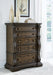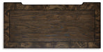 Details B947B10: Includes upholstered poster headboard panel, poster footboard panel, rails, slats, posts and canopy , Made with hardwood solids, oak veneer, MDF substrates and cast resin components, Dark brown finish, Metal canopy, Foam headboard cushion with polyester upholstery, Measure room, including ceiling height, to ensure bed clears fans and light fixtures, Foundation/box spring required, sold separately, Mattress available, sold separately, Assembly required, B947B1: Includes dresser and mirror, Made with hardwood solids, oak and ash swirl veneers, MDF substrates and cast resin components, Dark brown finish, 6 smooth-gliding drawers with dovetail construction (top drawer felt lined), Drawer pulls with antiqued goldtone finish, Mirror attaches to back of dresser, B947-46: Made with hardwood solids, oak and ash swirl veneers, MDF substrates and cast resin components, Dark brown finish, 5 smooth-gliding drawers with dovetail construction (top drawer felt lined), Drawer pulls with antiqued goldtone finish, B947-93: Made with hardwood solids, oak and ash swirl veneers, MDF substrates and cast resin components, Dark brown finish, 2 smooth-gliding drawers with dovetail construction (top drawer felt lined), Pull-out tray behind bottom drawer, Drawer pulls with antiqued goldtone finish, 110V power supply with dual USB charging ports, Power cord included; UL Listed,
