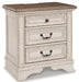 | Details | B743-46: Made of veneers, wood and engineered wood, with cast resin components, Antiqued two-tone finish, Dark bronze-tone finished metal hardware, 5 smooth-gliding drawers with dovetail construction, Includes tipover restraint device, Small Space Solution, Includes tipover restraint device, B743-93: Made of veneers, wood and engineered wood, with cast resin components, Antiqued two-tone finish, 3 smooth-gliding drawers with dovetail construction, Dark bronze-tone finished metal hardware, 2 electrical outlets and USB charging ports, Power cord included; UL Listed, Small Space Solution, B743B1: Made of veneers, wood and engineered wood, with cast resin components, Antiqued two-tone finish, 7 smooth-gliding drawers with dovetail construction, Dark bronze-tone hardware, Mirror attaches to back of dresser, Assembly required, Includes tipover restraint device, B743B11: Made of wood and engineered wood, with cast resin components, Includes headboard, footboard and rails, Distressed, chipped white finish, Polyester upholstery with foam cushion and button tufting, Foundation/box spring required, sold separately, Mattress available, sold separately, Assembly required, Bed is compatible with an adjustable base, | |
