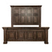 This unique king California panel bed is the perfect way to enhance your room with traditional living design. The brownstone finish accompanied by heavy distressing creates a truly unique look. Crafted with rubberwood solids and birch veneers, this piece features a heavy crown molding and sturdy bolt on rails, all anchored by block feet.