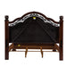 Elevate your home with the Messina Estates California king poster bed. Crafted of rubberwood solids and birch veneers, this kit features a cognac finish. The poster bed features large square posts with the acanthus leaf carvings accenting the top of the posts, and a scrolled metal accent in the headboard. With bolt-on rails and a center support slat system, this bed is sure to last. Add this European bedroom set to your luxury style home.