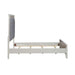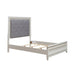 Commanding attention in any space, the Reflections queen upholstered bed is crafted with Rubberwood solids and Paper Laminate in a Pearl White finish. The picture frame molding of the headboard is highlighted with rhinestones and touch LED lighting. The button tufted Gray Chenille upholstered panel sparkles with rhinestones. The footboard features a floating style top with a rhinestone apron for added sparkle, and flows into a tapered foot base. Turn your bedroom into a celestial sanctuary with the Reflections queen upholstered bed.