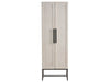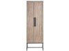 Showcasing a warm finish, the Utility Cabinet brings refined storage to any room. Its sleek metal base elevates adjustable wood shelves, accented with inset glass, offering a blend of modern design and practical display. This piece adds a touch of architectural sophistication, making it a versatile and stylish addition to your home.