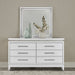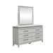 Commanding attention in any space, the Reflections dresser and mirror is crafted with Rubberwood solids and Paper Laminate in a Pearl White finish. The dresser features a floating style top with a rhinestone apron. The floating style mirror has rhinestone accents inside the interior frame, and both the dresser and mirror have touch LED lighting for added sparkle. Rounded picture frame molding softens this set, with the dresser having a tapered foot base. Attach the mirror to the dresser with the included bolt on supports. Turn your bedroom into a celestial sanctuary with the Reflections dresser and mirror.