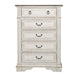 This Abbey Park drawer chest is the perfect way to accent your room with an effortless blend of European Traditional design. Weathered brown whitewash top and antique white finish, combined with heavy chipping, creates a truly unique look. The post design with fluted top accents and chamfered edges completes this traditional piece.