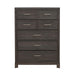 Create a room of your own that provides the perfect start and end to each day with the Modern Edge 5 drawer chest. Meticulously crafted using Rubberwood solids and Melamine, this chest features a Caffe finish. The chest boasts wide picture frame molding and a distinguished raised block base, exuding timeless charm and sophistication. Each drawer front is wood framed, accentuating the craftsmanship and adding a touch of elegance to the piece. Adorned with Satin Wash bar pull hardware, the drawers offer both ease of use and visual appeal. The top two drawers feature a unique design element: moldings that create the illusion of two separate drawers while still providing deep storage space within each. This clever detail adds visual interest and enhances the chest's versatility, allowing for efficient organization without compromising on style. Whether you're storing clothing, linens, or personal belongings, the Modern Edge 5 drawer chest offers ample storage capacity while elevating the aesthetic of your bedroom. With its impeccable design and thoughtful details, it's sure to become a cherished piece in your home for years to come.