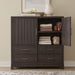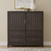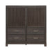 Create a room of your own that provides the perfect start and end to each day with the Modern Edge dressing chest. Meticulously crafted using Rubberwood solids and Melamine, this dressing chest features a Caffe finish. With its wide picture frame molding and raised block base, this chest exudes modern sophistication and charm. Featuring two doors adorned with reeded pattern accents, this chest adds visual interest and texture to your space. Behind each door, you'll find one adjustable wood shelf, offering customizable storage options to suit your needs. At the bottom of the dressing chest, four wood-framed drawers provide additional storage space for your essentials. Each drawer and door is elegantly accented with Satin Wash bar pull hardware, adding a touch of luxury to the piece. Whether you're storing clothing, accessories, or personal items, the Modern Edge dressing chest offers both functionality and style. Its versatile design makes it a perfect addition to any contemporary bedroom, combining practicality with chic aesthetics to elevate your living space.