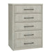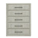 The Modern Play 5 drawer chest combines contemporary style with thoughtful functionality. Constructed of durable Rubberwood solids with Paper Laminate in a Natural White finish, it showcases soft shaping with gently rounded corners and pilasters. Each drawer features flat fronts with a center overlay panel for a symmetrical, modern look, complimented by sleek Bronze bar pull hardware. The top drawer includes premium felt lining for delicate items, making this chest as practical as it is stylish.