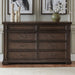 The Provence Park 8 drawer dresser is a symphony of design and functionality that brings an air of sophistication to your bedroom. Crafted with meticulous attention to detail using Rubberwood solids and Split Heart Hickory veneers, this dresser features a Chateau Brown finish. This dresser is not just a storage solution; it's a statement piece that seamlessly blends classic aesthetics with modern convenience. The serpentine-shaped top drawers of the dresser immediately catch the eye, adding a touch of elegance to the overall design. These gracefully curved drawers create a sense of fluidity, making a striking visual impact. The square turned pilasters, flanking the dresser, boast graduated bead molding that adds a layer of dimension, showcasing meticulous craftsmanship and attention to detail. Each drawer is framed with bead molding accents, creating a cohesive and refined look. The custom antique brass knob and bail hardware add a vintage touch, infusing the dresser with a sense of timeless charm. Opening and closing the drawers becomes a tactile pleasure, thanks to the soft-closing drawer guides, adding a touch of luxury to the dresser's functionality. The top drawers of the dresser are lined with premium felt, providing a plush environment for delicate items. Meanwhile, the bottom drawers feature a cedar-lined panel, imparting a fresh aroma and natural protection to your clothing. This thoughtful design ensures that your dresser not only serves as a stylish storage solution but also as a sanctuary for your most cherished belongings. Elevate your bedroom décor and create a haven of luxury with the Provence Park 8 drawer dresser.