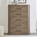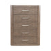 A masterpiece of modern design, the South Bend 5 drawer chest combines clean lines with subtle detailing for a contemporary aesthetic. Meticulously crafted using Rubberwood solids and Small Split Heart Cathedral White Oak veneers, this chest features a Burnished Clay finish. The chest features softly rounded pilasters that add a touch of elegance to its sleek silhouette, creating a sophisticated look that elevates any bedroom decor. Crafted with precision and attention to detail, the chest boasts flat-cut drawer fronts that exude a sense of timeless simplicity. The top drawer is luxuriously lined with premium felt, providing a gentle touch for delicate items and adding a touch of opulence to your storage space. Meanwhile, the bottom drawer features a cedar-lined panel, offering a natural and aromatic environment to keep your garments fresh. Accentuating the chest’s minimalist charm are Satin Pewter bar pull hardware, adding a hint of understated glamour to each drawer front. These sleek and stylish pulls perfectly complement the chest’s contemporary design, enhancing its visual appeal. But the allure of this chest doesn't stop at its aesthetic appeal – it's also designed for practicality and convenience. All drawers operate on soft-closing drawer guides, ensuring smooth and quiet functionality while preventing slamming for a serene bedroom environment. Elevate your bedroom storage with the South Bend 5 drawer chest, a fusion of style, functionality, and luxury craftsmanship that promises to enhance your space for years to come.