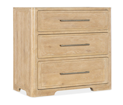Hooker FurnishingsThe Retreat Nightstand has a tranquil personality with a modern twist and organic, textured pewter bar pulls. Crafted of Oak and Maple Veneers, it ...