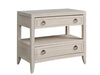 The Avaline Nightstand is a stylish and functional addition to any bedroom. Its two drawers and one open shelf provide ample storage for books, electronics, and other bedside essentials. The built-in electrical outlet with two USB ports and two standard outlets keeps your devices charged and ready to go. The White Oak finish and metal ring pulls add a touch of modern elegance to this versatile piece.