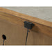 • Industrial bar pull hardware in matte black finish trims the top drawer