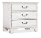 Inspired by the tropical craftsmanship of the West Indies and the cane accents of the classic British and Dutch Colonial design periods, the Charleston Nightstand has bamboo-motif trim and three drawers with self-closing drawer guides. The wood nightstand is finished in White Heron, a softer interpretation of the classic Southern limestone white with a slightly brighter sheen, delivering an heirloom-quality finish. The drawer interiors are painted gray, and the exteriors have antique pewter-colored decorative bail pulls.