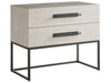 The Metal Base Nightstand combines industrial flair with natural warmth. Featuring a sleek metal base and a warm finish, its clean lines and two spacious drawers offer both style and functionality. This nightstand adds a modern, architectural touch to your bedside, perfect for those seeking a blend of contemporary design and practical storage.