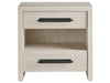 The Two Drawer Nightstand offers bedside convenience with a touch of architectural elegance. Finished in a warm, its clean lines and framed drawer fronts create a sophisticated look. The open shelf and two drawers provide practical storage, making it a stylish and functional addition to your bedroom.