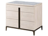 Dazzling white Calacatta marble is the star of the Maren Nightstand, complemented by soft white oak panels and accented with satin bronze hardware and base frame.