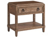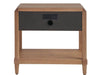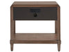 The Drawer Nightstand offers a blend of rustic charm and modern convenience. Its full finish and metal ring pulls create a warm and inviting aesthetic. The single drawer and open shelf provide ample storage space for your bedside essentials