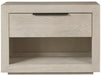 The Huston Nightstand is a perfectly sized bedside accent, showcasing one enclosed top drawer, a lower open display area, and a calming Quartz finish.