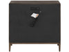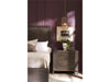 The Montclair Nightstand showcases three drawers with signature Cocoa case and Embossed Cocoa fronts, elevated on a sleek Smoked Gold metal base. Integrated electrical features provide modern convenience while refined proportions complement contemporary bedroom settings.