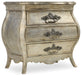 Inspired by an 18th Century French Antique, this curvy three-drawer bombe-shaped nightstand is all elegance in a silver leaf finish with slightly aged patina and opulent hardware.