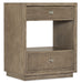 A stylistically versatile nightstand blending natural textures with a light-and-airy modern aesthetic, the Sonnet Nightstand has two self-closing drawers with cane fronts. Crafted of Quartered and Cathedral-Cut White Oak Veneers in a light earthen-toned finish, it has an open space above the bottom drawer for storage and a cord clip on the back panel. The plinth base and satin-finished knobs add chic modern appeal.
