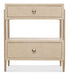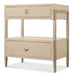 The Westwood Two-Drawer Nightstand offers understated luxury with practical features. Its two drawers with oak veneer bottoms and open space between drawers for extra storage are complemented by an open metal frame with plated Radiance hardware. The Polished Limestone finish on quartered oak veneers adds a modern, elegant touch, making this nightstand perfect for contemporary bedrooms. Its clean lines and subtle design make it a versatile addition to any space.