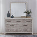 Enhance your bedroom’s charm with the exquisite Backroads dresser and mirror. Crafted with excellence using Poplar solids with paint grade and Spruce veneers, this set features a Weathered White and Parchment Brown finish. The dresser features a robust block style top and wide pilasters that gracefully flow into tapered feet, offering a sturdy and elegant foundation. Each drawer front is adorned with high-low veneers, finished in a Parchment Brown with a heavy wire brush technique. This creates a stunning two-tone effect when contrasted with the Weathered White finish of the dresser and mirror, adding depth and character. Accentuating the dresser’s rustic charm, Burnished Bronze bar pull hardware adorns each drawer, providing a tasteful contrast against the finish. Enjoy smooth and quiet operation with soft closing drawer guides, ensuring effortless access to your belongings while maintaining a serene bedroom atmosphere. The top drawers are luxuriously lined with premium felt, offering a protective and plush environment for delicate items. Meanwhile, the bottom drawers feature cedar lined panels, imparting a natural, aromatic touch. The mirror frame boasts softly rounded bead molding, delicately outlining the reflective surface with a subtle yet stylish detail. A 1-inch beveled edge around the mirror not only adds a refined finishing touch but also enhances its visual appeal by creating depth and dimension. Attach the mirror to the Backroads 7 drawer dresser with the included bolt on supports. The Backroads dresser and mirror promises both style and durability, making it the perfect addition to your bedroom ensemble.
