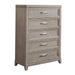Elevate your luxurious home with the Belmar king panel bed, dresser, mirror, and chest. Crafted of rubberwood solids and split heart oak veneers, this kit features a washed taupe and silver champagne finish, full extension drawers with premium felt lined top drawers and cedar lined bottom drawers, tapered block feet, graduated drawer front moldings adding architectural interest, and is accented with satin nickel custom bar pull hardware. The panel bed offers a one-of-a-kind decorative tile design headboard and a low-profile footboard. The dresser is equipped with eight drawers, and pairs well with the square framed landscape mirror with a 1” beveled edge and includes bolt-on supports. The chest offers an additional five drawers of storage. Add this sophisticated bedroom kit to your contemporary space.