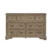 Accent your room with an effortless blend of European Traditional design with this 7-drawer dresser. The Weathered Bisque finish is truly a unique look. Storage abounds with 2 small drawers, 1 medium sized drawer, and 4 larger drawers, each equipped with bottom case dust proofing. Softness is added to the design with canted corners and rounded pilasters, accompanied by bead molding on each drawer front.
