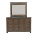 Enhance your home with the Thornwood Hills king two-sided storage bed, dresser, mirror, chest, and nightstand. Crafted of rubberwood solids with mango veneers, this kit features a rock beaten grey finish with saw cuts, straight line cases with wide pilasters and block feet, metal strip accents, planked tops and side panels, wood framed drawer fronts, full extension drawers with felt lined top drawers, and is accented with dark antique pewter hammered metal bar pull hardware. This functional two-sided storage bed features two drawers in the footboard, and a drawer on each side rail maximizing storage space beneath your bed. The dresser features eight drawers of storage, and pairs well with the wood framed mirror that features a beveled edge. Attach the mirror to the dresser with the included bolt-on supports. The chest offers you an additional five drawers of storage. Place the two drawer nightstand next to your bed to complete this look. Add this unique bedroom set to your traditional style home.