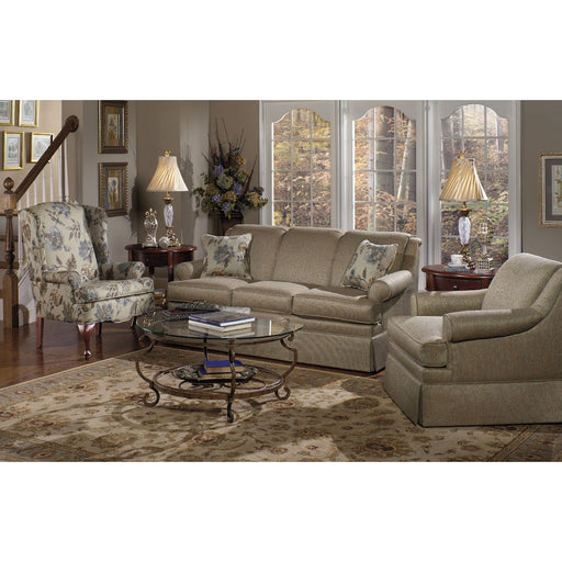 Craftmaster FurnitureMake room for comfort on this stylish skirted sofa with a single Blend Down seat cushion. Lovely style elements such as welting, track arms, and lo...