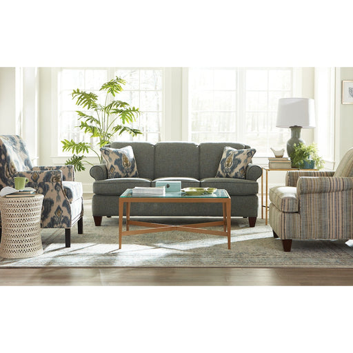 Craftmaster FurnitureCasual sophistication comes to life in this updated classic sofa. Dark brass nail heads trim the arm panels and accent the pleated rolled arms- set...