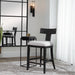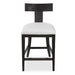 This modern take on a klismos design features a curved rubber wood frame that has been wire brushed and rubbed in a charcoal black stain, paired with a stone white slubbed performance fabric cushion.