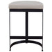 Simplistic but sturdy, this statement counter stool features a thick hand forged iron base finished in matte black. Plush seat is tailored in a beige linen blend fabric with added performance treatment to resist soiling and stains.