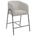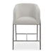 Inspired by Scandinavian designs, this barrel back counter stool showcases a chiseled iron frame in a natural aged black iron finish. A casual ivory and warm gray boucle performance fabric accents this modern look.