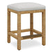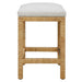 Casual and coastal styling wrapped in natural rattan and upholstered in an off white linear textured polyester. Complete with an antique gold kick plate.