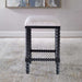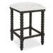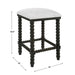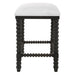 A stylish and classic counter stool featuring spindle turned legs and carved trim finished in a stylish black ceruse stain. Plush seat is tailored in a crisp white performance fabric.