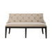 Reinvent your style and comfort with the Americana bench, prefect for any room in the house. Features exposed frame to giving you that deconstructed element, tufted back in a truffle linen fabric, nail head accents, web seating and tapered legs.