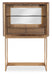 Entertain in style with the Eleana Bar on Stand, a show-stopping bar cabinet that blends Light Caramel walnut veneers with Sunlit Bronze metal accents. Behind its two wood doors with magnetic catches, you’ll find a floating backlit mirror with a three-intensity touch switch, an adjustable solar bronze glass shelf, and self-closing drawers for chic storage. Perfect for dining rooms or stylish living spaces, this transitional bar stand offers both function and luxury for the modern entertainer.